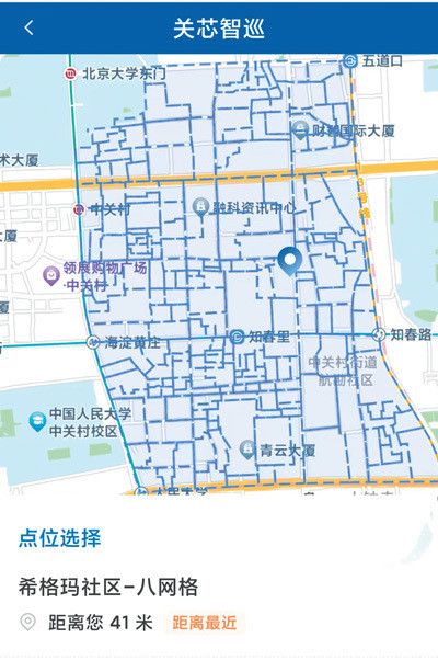 在“关芯智巡”系统里,中关村街道将民生保障、安全生产、社区建设、城市管理等24类巡查业务分解为标准化事项,随后为辖区内30个社区共213个网格匹配唯一的任务清单。